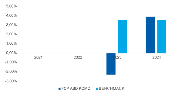 FCP ABD KOMO est un OPCVM actions avec pour horizon de placement 07 ans minimum, il est dédié aux placements de long et très long terme. La stratégie est de diversifier les investissements sur les types d’instruments du marché obligataire, monétaire et sur les actions des grandes entreprises identifiées comme les plus créatrices de valeurs.