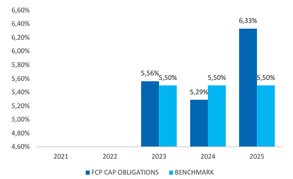FCP CAP OBLIGATIONS est un OPCVM obligataire d’ABAM avec pour horizon de placement 03 ans minimum pour un rendement cible de 5,5% net l’an. Il est dédié aux placements de moyen à long terme. Sa stratégie de diversifier les investissements sur les différents types d’instruments du marché obligataire et monétaire.